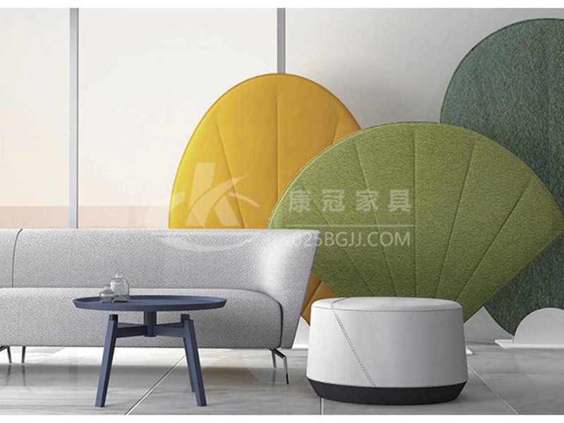 屏風(fēng)創(chuàng)意沙發(fā)的設(shè)計靈感來源于中國古代折扇、蒲扇和團扇三種形式,現(xiàn)代辦公環(huán)境講究工作便利而又兼顧私密性,設(shè)計彰顯其功能。當(dāng)使用者需要它進行獨立協(xié)作或獨立思考時,扇子屏風(fēng)可以作為沙發(fā)的一種聲學(xué)墻模塊,可減少無關(guān)的背景噪音,形成一個辦公與創(chuàng)造的空間。屏面上代表扇骨的壓痕,具象的表達了扇子的形象,為辦公生活帶來輕松寫意的氛圍。不僅如此,扇子屏風(fēng)不僅具有吸音功能,同時在空間中能起到軟性隔斷的作用,優(yōu)雅的將不同空間分割開來。